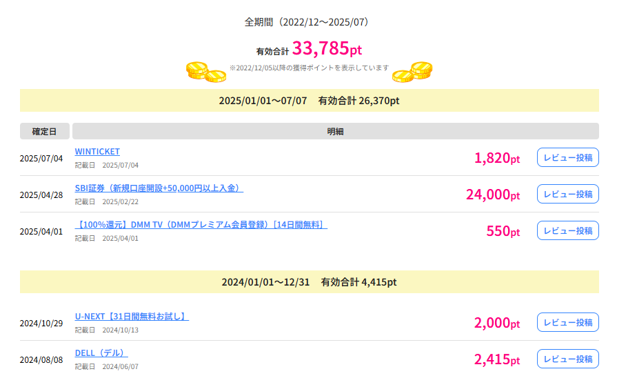 私自身、ハピタスを利用して累計3万円分ほどのポイントを受け取っている。派手ではないけれど、確実に積み上がった金額。